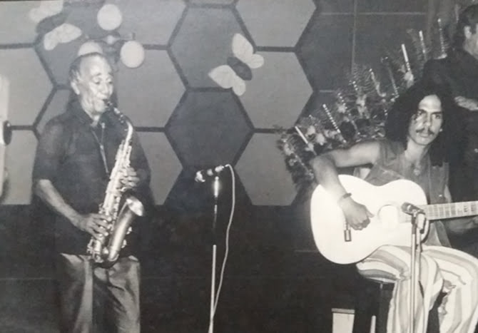 O maestro, dos bons, Miro Oliveira tocando sax quando se apresentava na TV Jornal do Commercio (Foto: Acervo Familia)