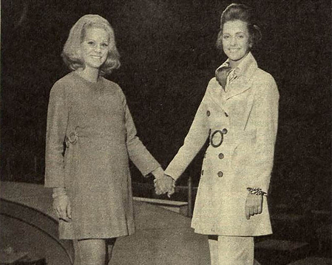 Miss Brasil de 1966, grávida, Ana Cristina Ridzi e a Miss Universo de 1968, Martha Vasconcellos (Foto: Manchete)