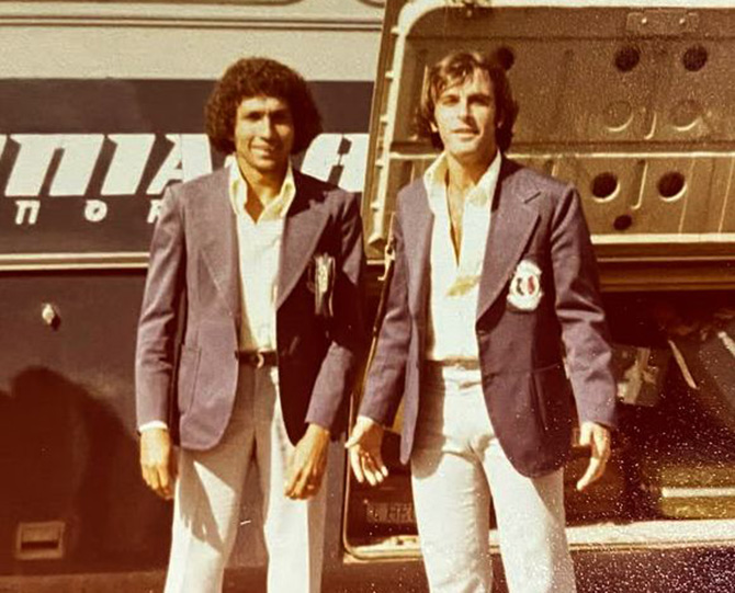 Os atletas dos Santa Cruz Givanildo e Betinho em turnê internacional em 1979 (Foto: Santa Cruz)