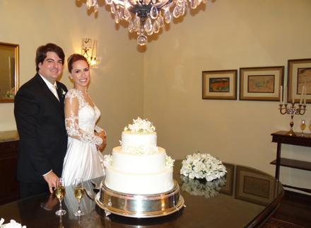 Alexandre e Renata diante do bolo (Foto: Fernando Machado)