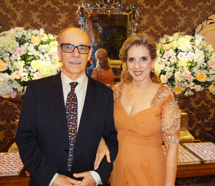 Depois Renata Rocha e Alexandre de Sá Pereira, assim os convidados, se deslocaram da Ordem Terceira de São Francisco para a Villa Ponte d’Uchoa, para os cumprimentos. A decoração de Tita Medeiros estava bonita. No foyer caiam do teto arranjos suspensos, tipos guirlandas de rosas e hortências. Na extensão do salão uma cortina de lustres davam um toque todo especial. Sobre as mesas repousavam arranjos em jarras de vidros e castiçais com quatro velas brancas.