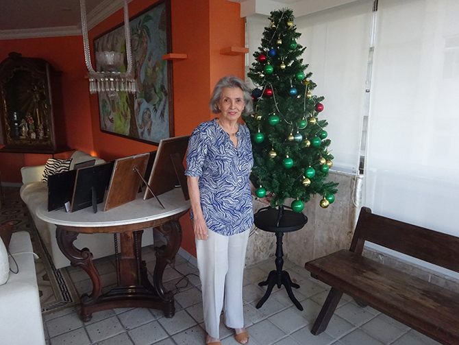 Maria Digna diante de sua árvore de Natal (Foto: Fernando Machado)