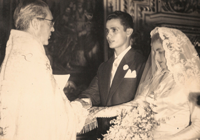 O padre Abranches casando Ricardo e Maria Digna Pessoa de Queiroz (Foto: Acervo da Família)