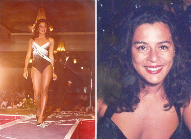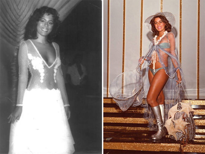 Virginia Helena como Miss Paraíba de 1981, em traje de noite e típico (Fotos: Acervo de VHG)