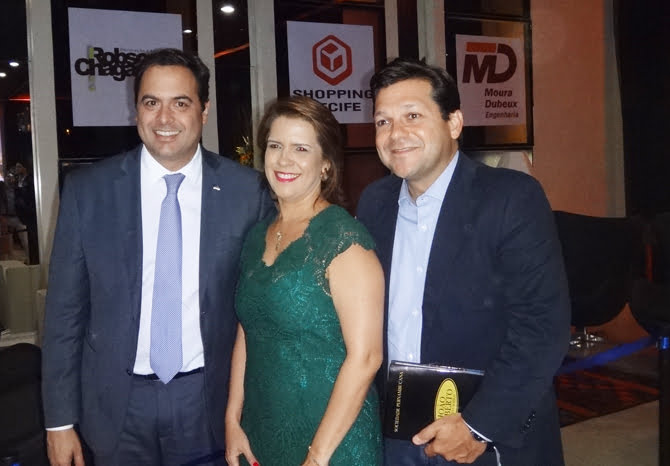 O governador Paulo Câmara, o prefeito Geraldo Julio e a primeira dama Cristina no lançamento do livro de João Alberto (Foto: Fernando Machado)