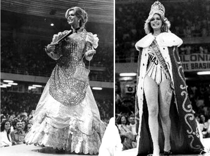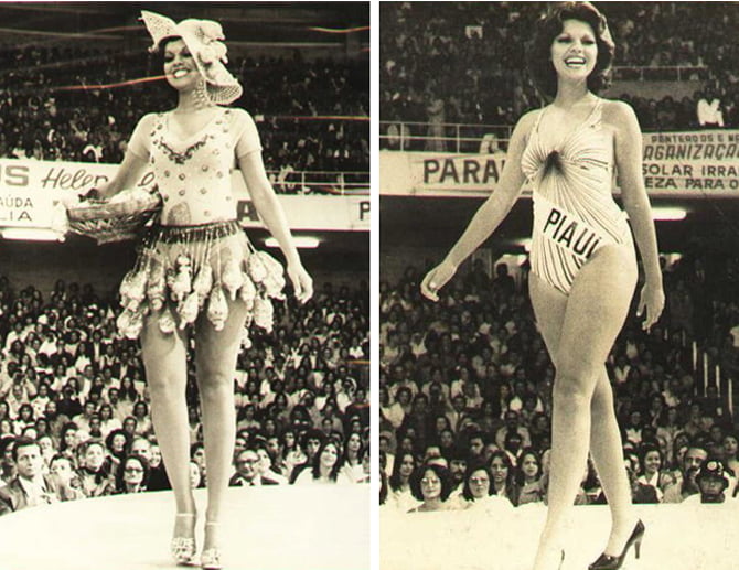 Suzana Araújo dos Santos em traje típico e como Miss Brasil (Fotos: Internet)