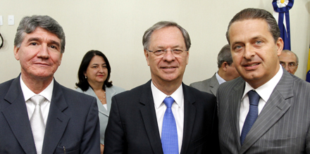 Ary Joel Lanzarin, Cledorvino Belini e Eduardo Campos durante o almoço (Foto: Alusio Moreira)